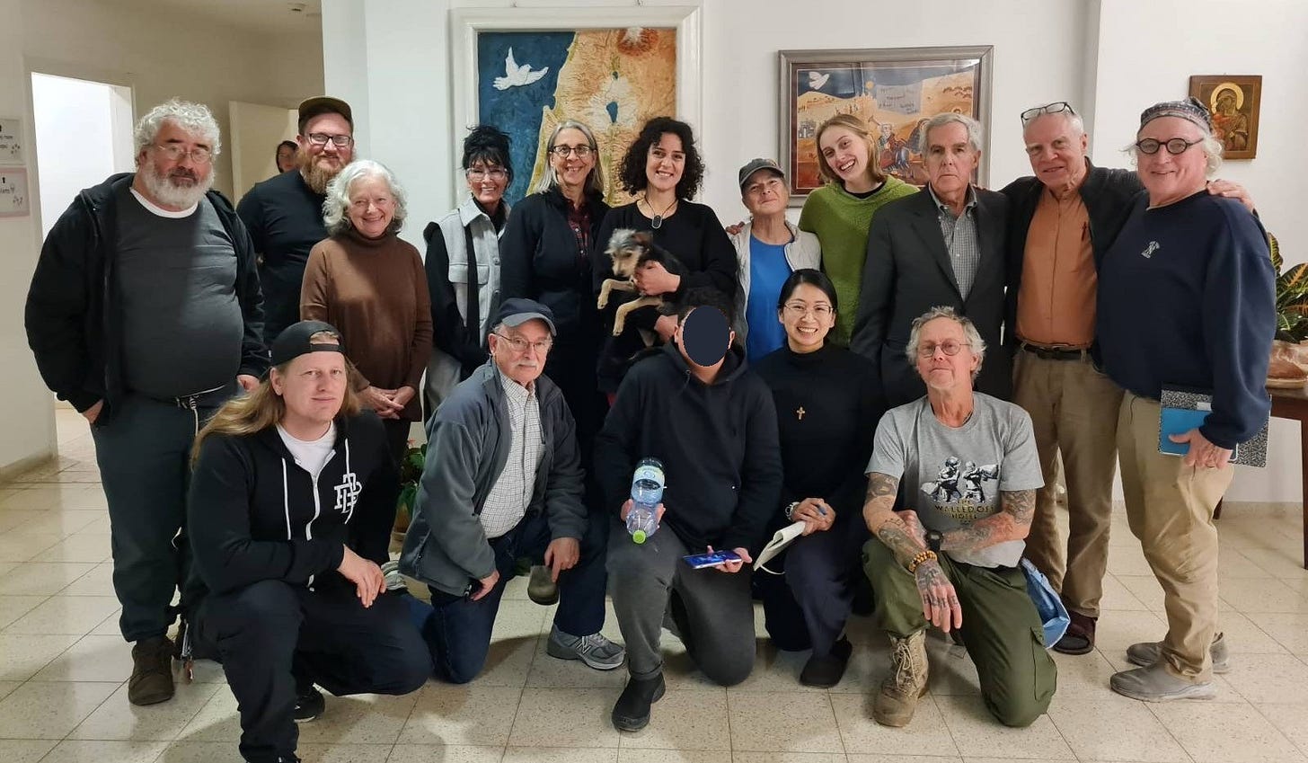 This past December, observed as the season of Advent in the Christian tradition, seventeen peacemakers led by Catholic Workers across the country returned from Palestine-Israel hosted by Sabeel. Sabeel is the ecumenical, grassroots center for Palestinian liberation theology, rooted in the universal ethic of nonviolence. In English, “Sabeel” can roughly be translated to “The Way”, the name of Christianity in its earliest days. Friends of Sabeel North America, an interdenominational Christian organization seeking justice and peace in the Holy Land through education, advocacy, and nonviolent action, hosted us. This was my third solidarity delegation to Palestine-Israel, made possible by the prayer, treasure, and love of our friends and family, who walked with us in spirit.